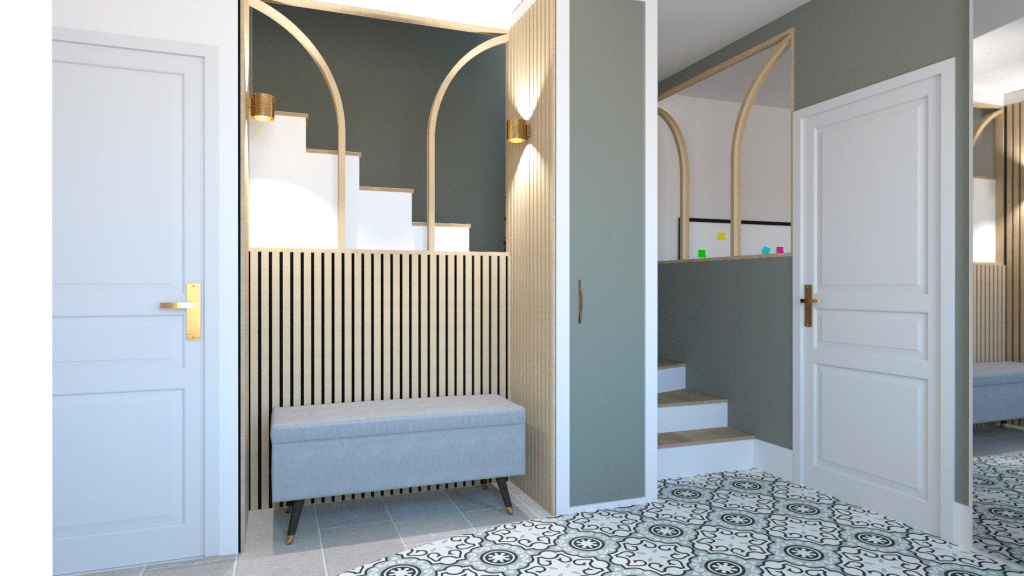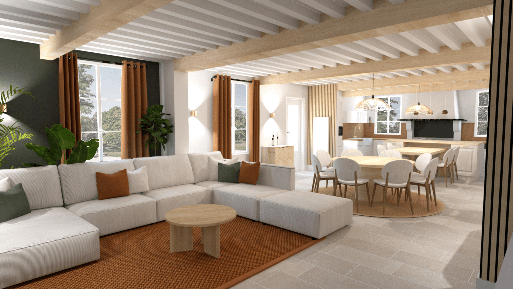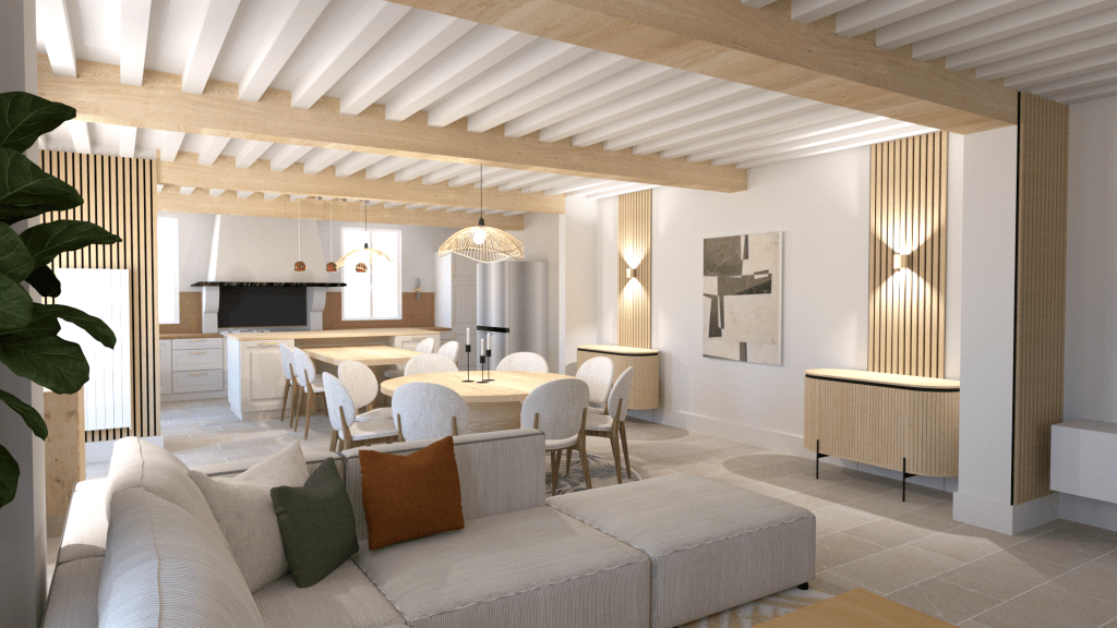 DESIGN AZLE a été sollicitée pour son travail d’architecte d’intérieur afin de travailler sur le design d’une maison (RDC / R+1) avec extension, suite à la satisfaction du client après avoir aménagé leur cabinet d’expertise comptable en construction.