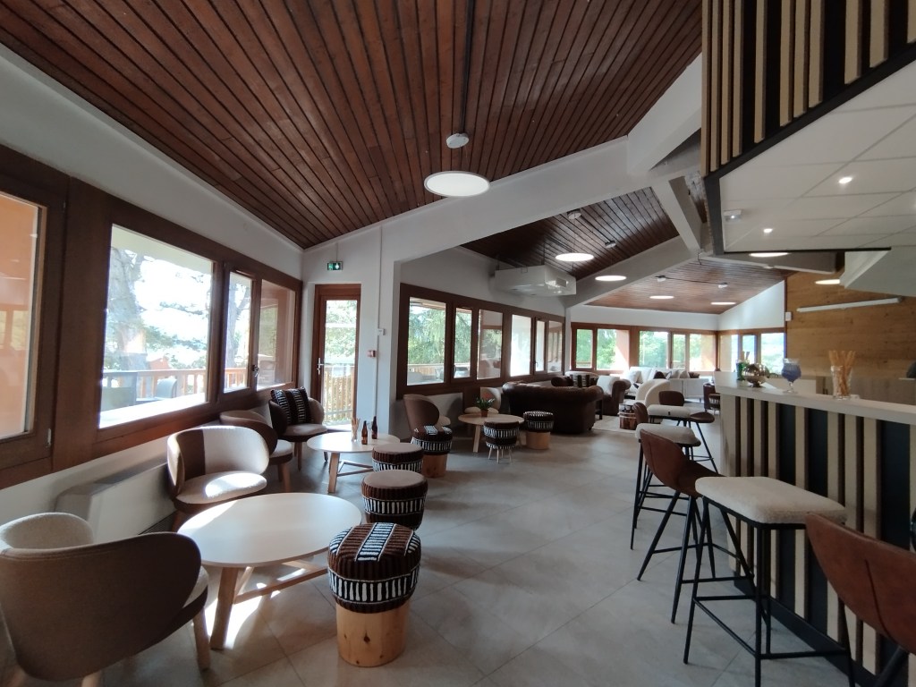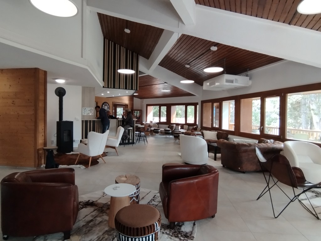 DESIGN AZLE s’est chargée de sélectionner l’ensemble du mobilier pour aménager le hall d’accueil d’un village vacances, sous la thématique de la montagne.