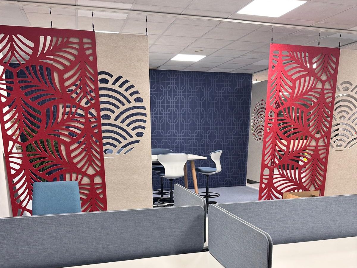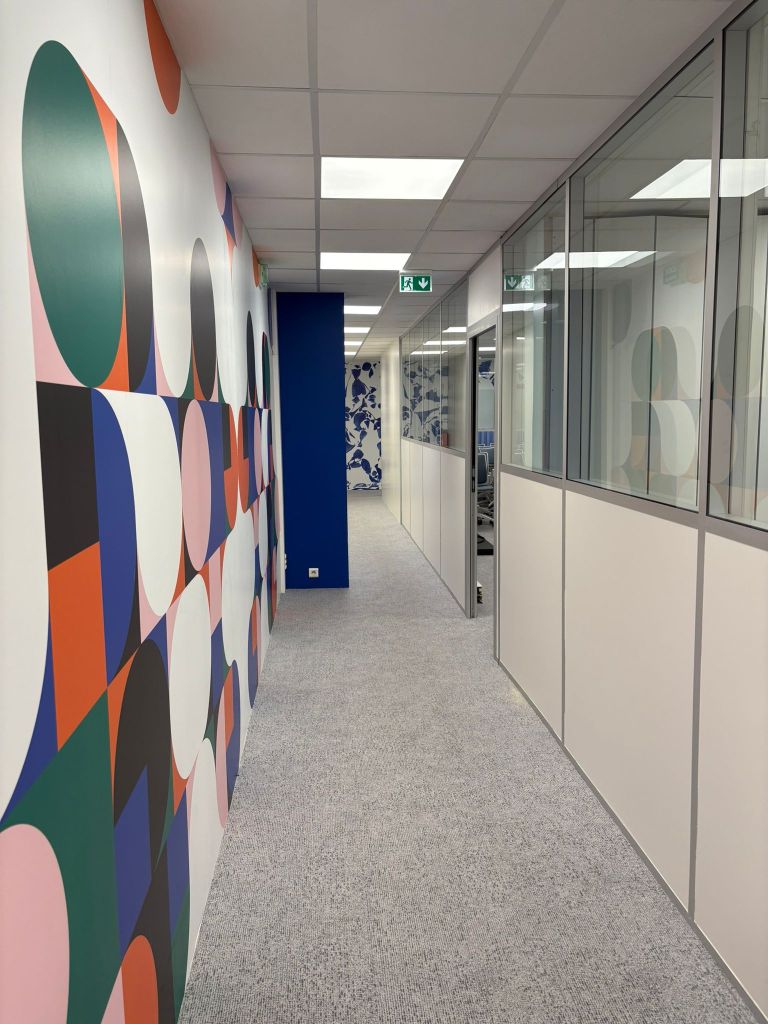 Ambiance chaleureuse, conviviale, moderne et dynamique, qui donne envie de travailler, avec un jeu de couleurs et des détails végétaux à l’image de leur fonction.
